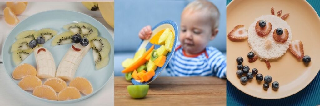 Et si l’enfant ne veut pas gouter certains aliments : n’oublions pas qu’il est parfois nécessaire de représenter ces mêmes aliments plusieurs fois et pourquoi pas sous des formes différentes avant que celui-ci soit accepté.